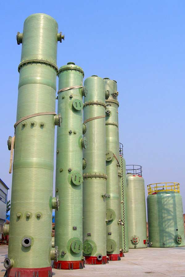 玻璃鋼塔器的應用:吸收塔、水洗塔、洗滌塔、尾氣塔、組合塔等。